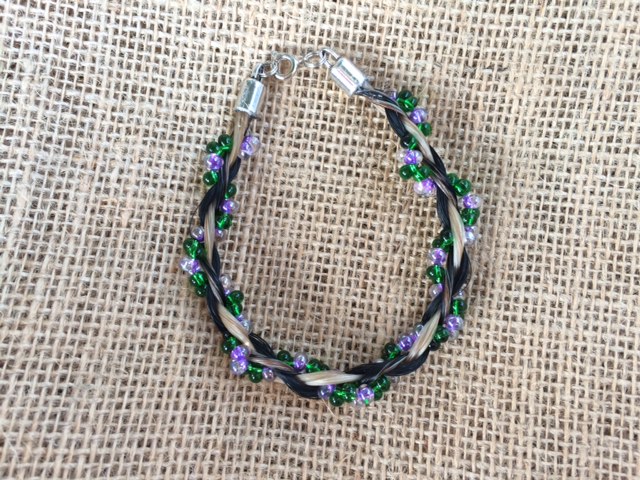 Twisted braid made with your horse's tail hair. Send us your clean and banded horse hair, and I'll turn it into the bracelet of your dreams! Typically measures about 7", please download the horse hair order form, print, and send with your hair. *color selection is made in the order form