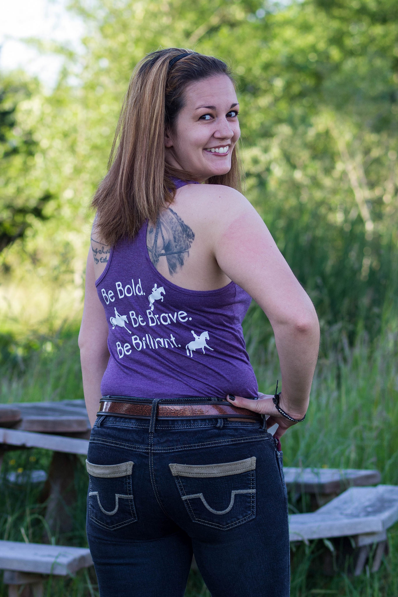 Tri-blend tank, excellent for riding on a hot summer day, or just relaxing and sporting your passion. Printed with our motto, Be Bold Be Brave Be Brilliant